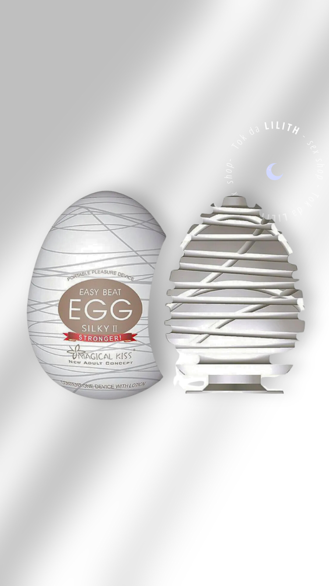 Discreto, com formado de ovo, Magical Kiss Egg é um masturbador focado no prazer masculino. Seu interior é texturizado proporcionando novos estímulos a masturbação peniana.