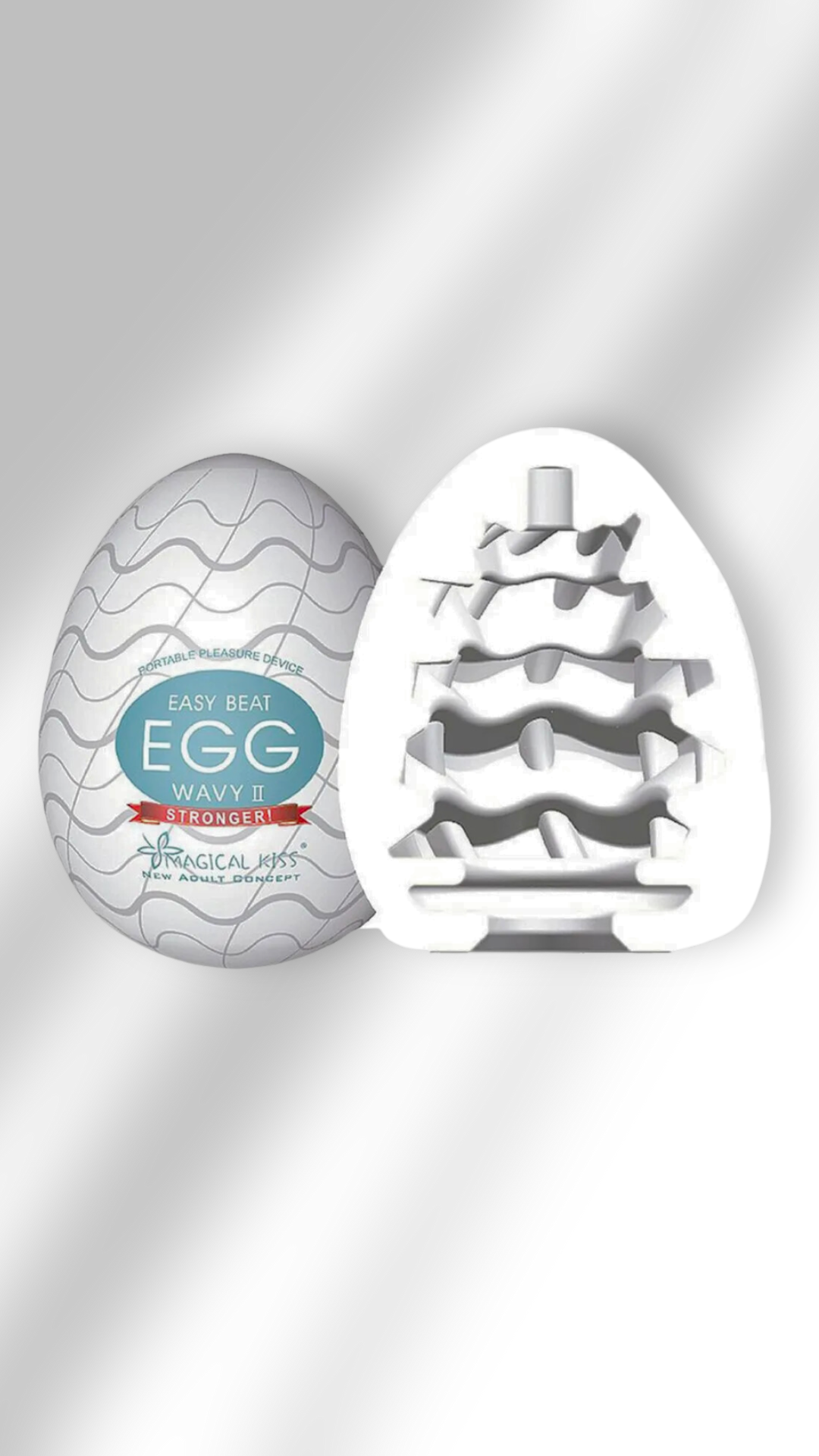 Discreto, com formado de ovo,  Magical Kiss Egg é um masturbador focado no prazer masculino. Seu interior é texturizado proporcionando novos estímulos a masturbação peniana.